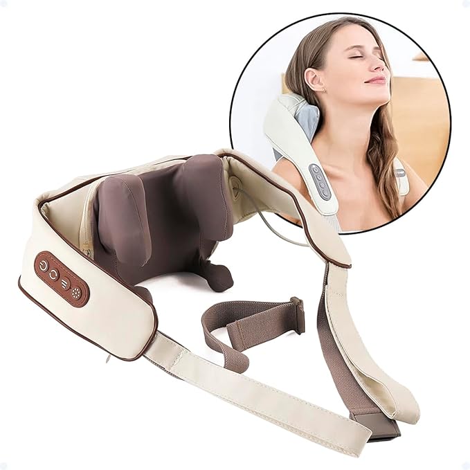 Relieve tension with this electric neck massager. Using heat and deep kneading, it soothes sore muscles and reduces stress.